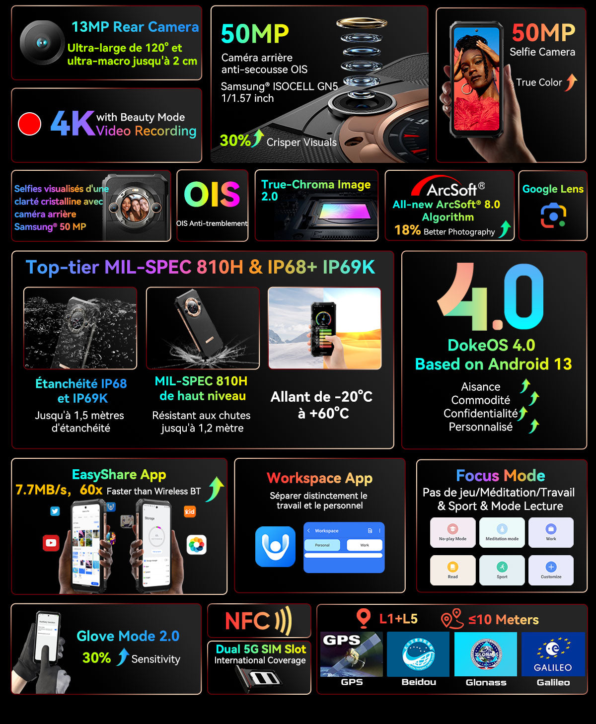 13MP (120° ultra-large et jusqu'à 2cm ultra-macro )